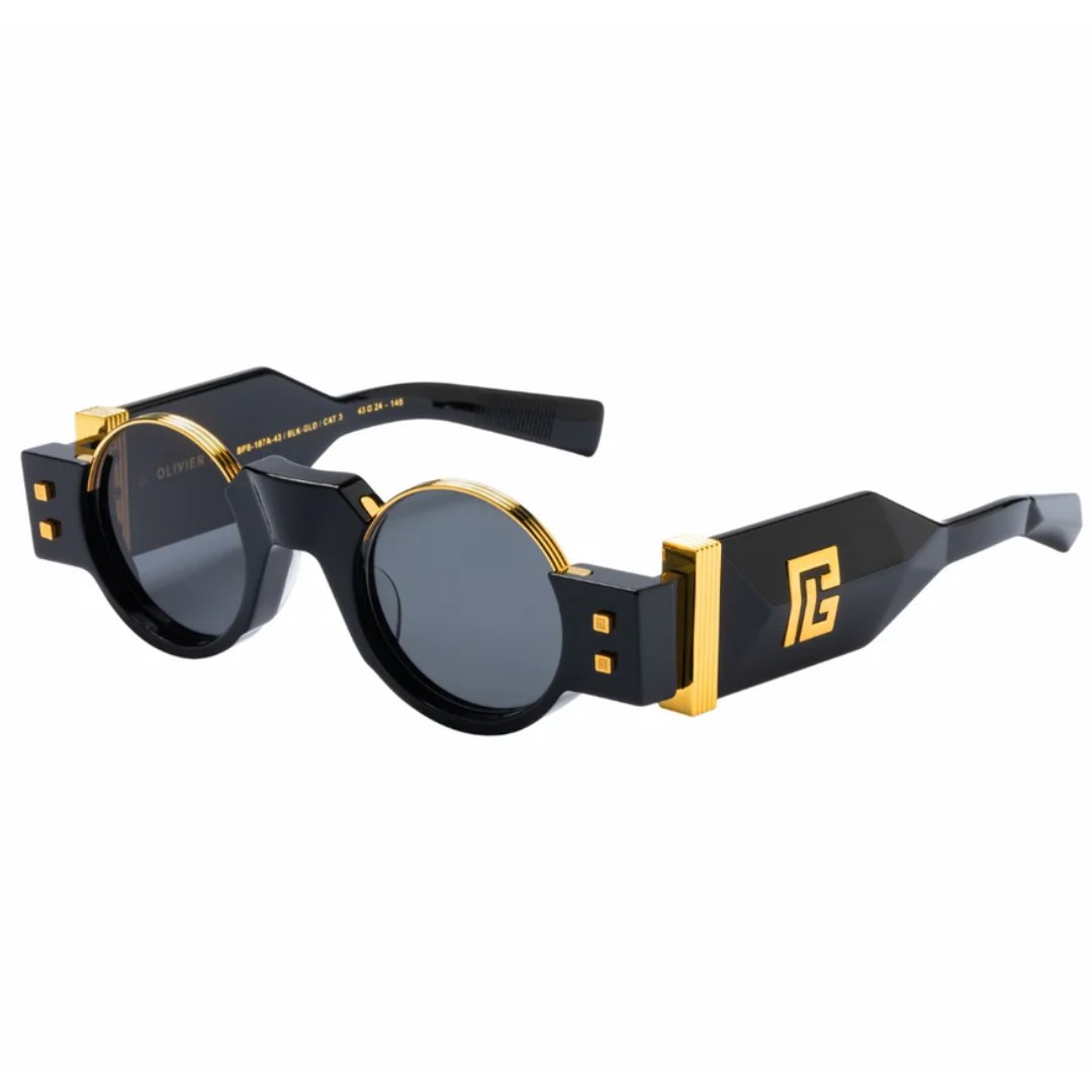 The design of the Balmain BPS 167A sunglasses features the eternally stylish and intellectual Round shape. This classic silhouette offers a soft, yet definitive profile, lending an artistic and sophisticated edge to the wearer’s look. The frame is constructed in a magnificent Black Gold colour combination. This luxurious pairing typically features high-quality black acetate encircling the lenses, beautifully contrasted with gleaming gold-toned metalwork on the temples, bridge, and custom hardware. The deep black provides a classic base, while the brilliant gold ensures the sunglasses catch the light beautifully, immediately signaling prestige and designer excellence.