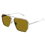 The Bottega Veneta BV1012S 007 is a definitive piece of Heritage Minimalism, reflecting the House’s dedication to refined attitudes and “quiet luxury.” This model reimagines the traditional navigator silhouette through a super-light, contemporary caravan shape. The Silver metal frame provides a cool, industrial aesthetic that is both timeless and sophisticated, while the solid Brown lenses offer a warm, high-contrast visual experience suitable for a wide range of lighting conditions.