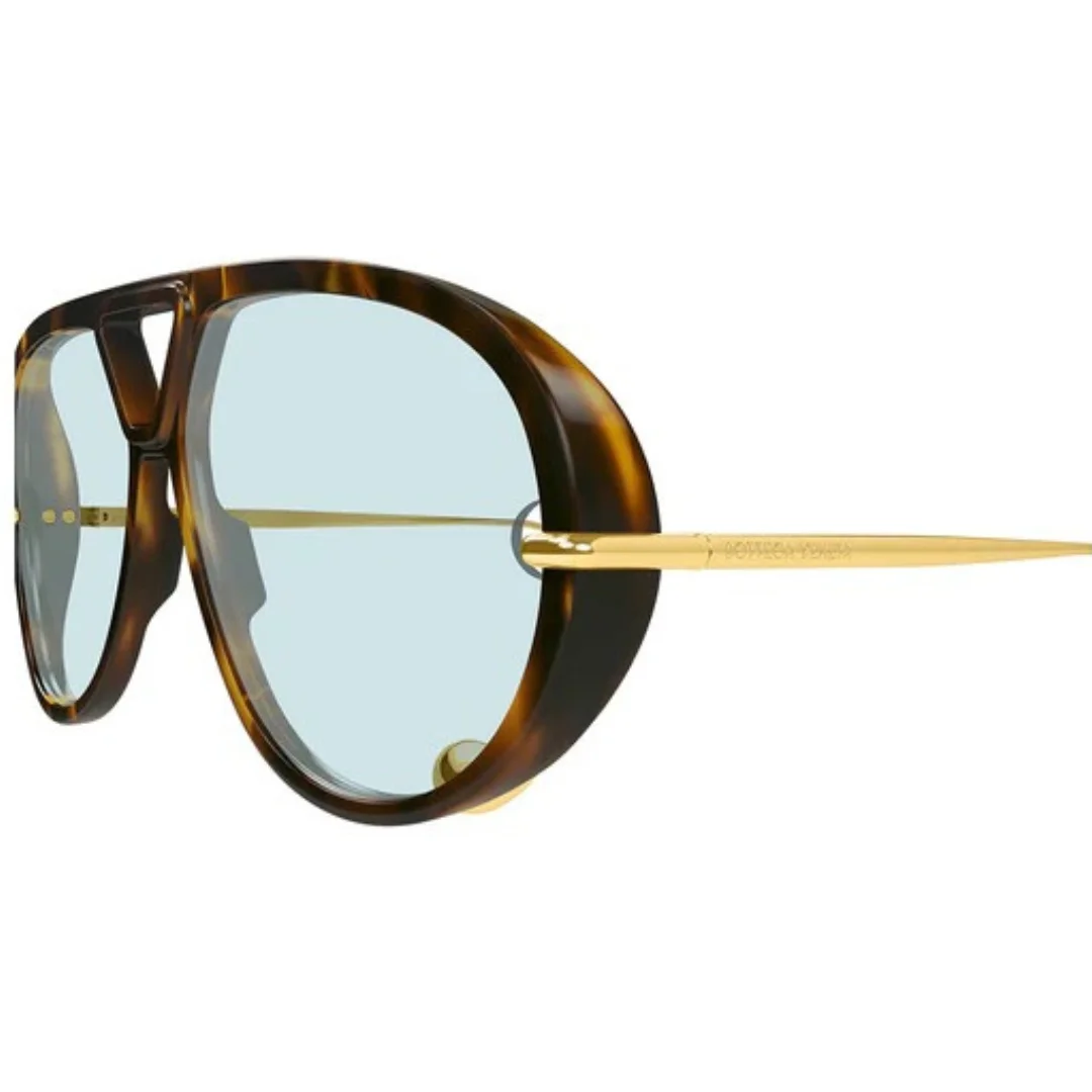 The Bottega Veneta BV1273S 007 is a definitive piece of the Unapologetic collection, designed to merge high-fashion audacity with the house’s signature “quiet luxury.” This model features a bold, oversized Havana acetate front that commands attention, while the Blue bio-nylon lenses provide a cool, high-contrast visual clarity. The rich, mottled tortoise tones of the frame offer a classic warmth that contrasts beautifully against the modern, technical feel of the blue tint.