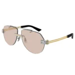 The Bottega Veneta BV1342S 002 is a definitive piece of Heritage Minimalism, showcasing the House’s ability to elevate industrial materials through refined, “quiet luxury” details. This model features a sophisticated Bicolor construction, seamlessly blending Gold and Silver metal tones. The warm Brown lenses provide a high-contrast, soft visual field that pairs excellently with the mixed-metal aesthetic, making it a versatile accessory for both warm and cool-toned wardrobes.