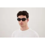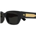 The architecture of the BV1400S is centered around its robust, thick-rimmed profile. With a 51mm lens size, it offers a “Medium” fit that focuses on providing a sharp, defined browline and strong corners. The standout feature is the 22mm bridge, which gives the frame a distinctive, architectural keyhole presence, ensuring a secure and comfortable fit even on broader bridges. The 140mm temples are accented with Bottega Veneta’s signature gold fringed ribbon hardware at the hinges—a subtle, metallic “blink” that provides a luxurious contrast to the jet-black acetate and signals the brand’s meticulous attention to detail.