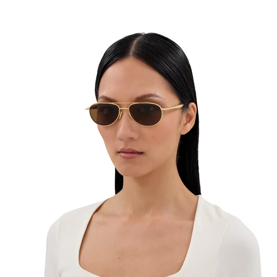 The Bottega Veneta BV1419S 001 is a definitive piece of Heritage Minimalism, part of the brand’s “Fin” collection that translates architectural lightness into wearable luxury. This model features a slim, precision-engineered Gold metal frame that offers a refined, industrial aesthetic. The solid Brown lenses are crafted from premium bio-nylon, providing exceptional optical clarity and a warm, high-contrast visual experience that is ideal for bright, sunny conditions.