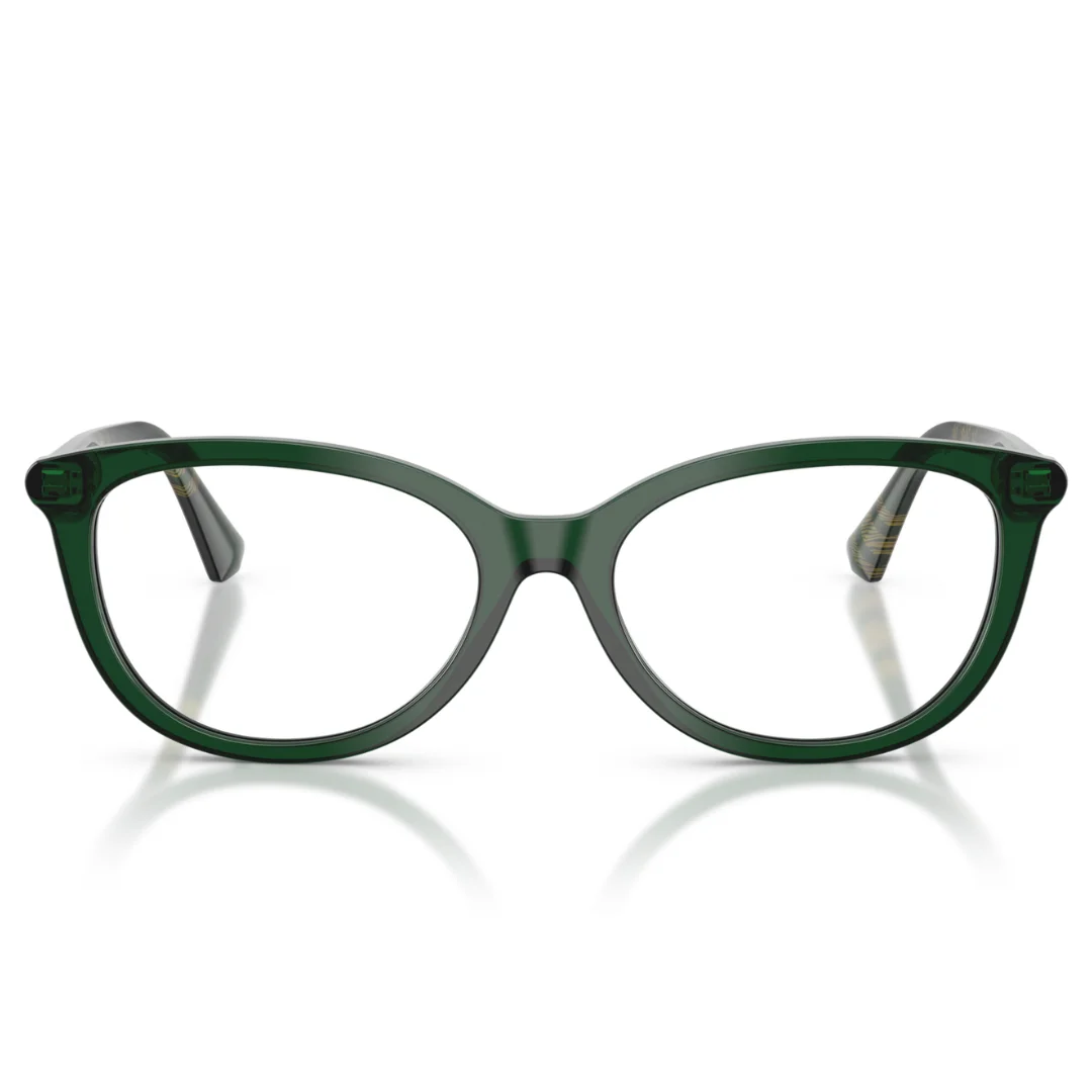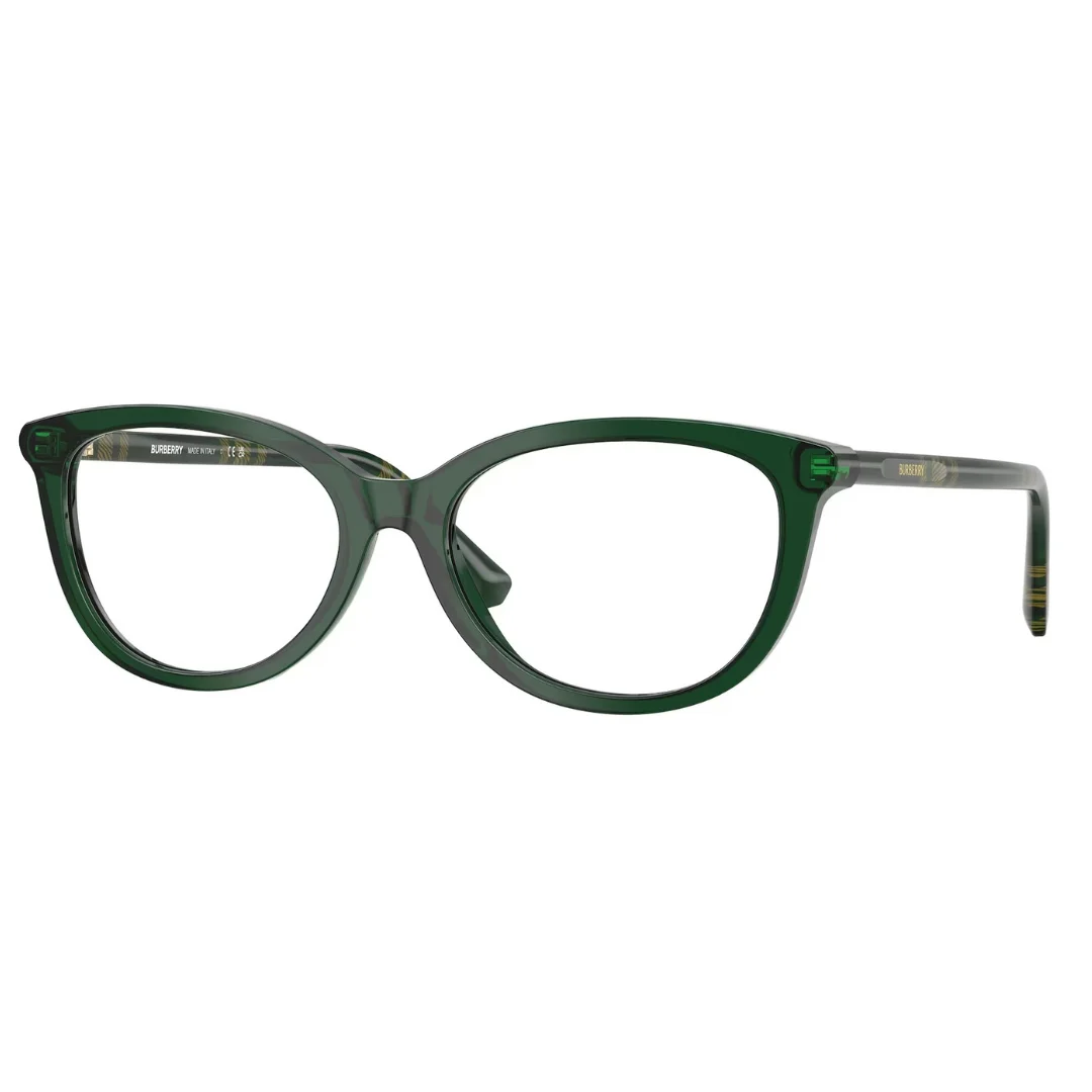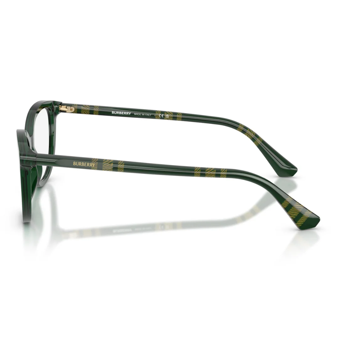 The Burberry 0BE2431 4162 eyeglasses showcase a classic and universally flattering rectangular or softened square silhouette, designed to complement a wide range of face shapes. The frame is meticulously crafted from high-quality, durable acetate, ensuring both a luxurious feel and robust construction. The 4162 colorway points to a sophisticated dark green finish. This deep, rich green of the Burberry 0BE2431 4162 frame provides a versatile, yet distinctive aesthetic that effortlessly pairs with any wardrobe, offering a subtle pop of color that is both refined and contemporary, perfect for Mumbai’s dynamic setting.
