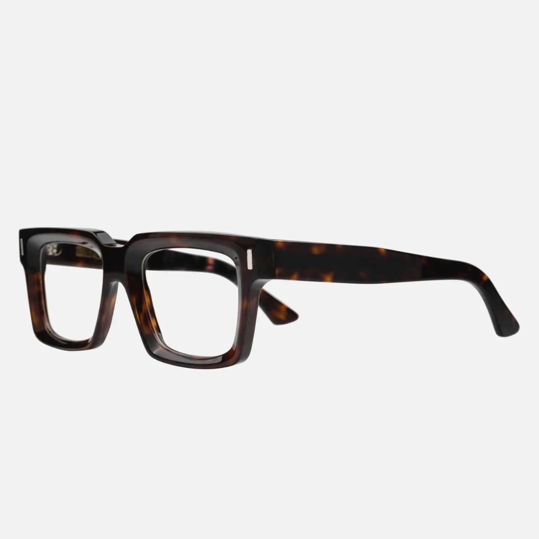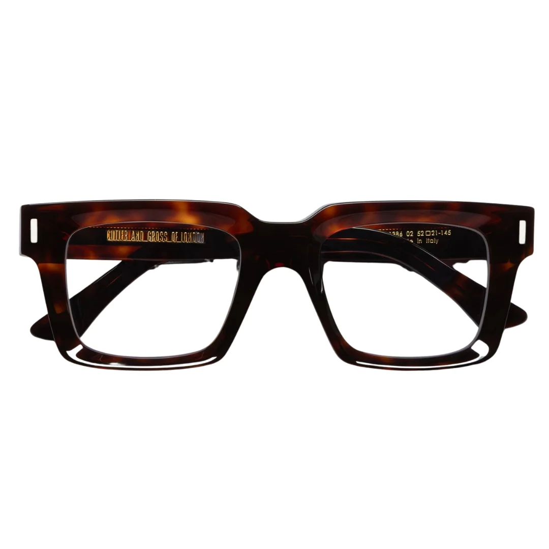 The Cutler and Gross CGOP 1386 02 is an authoritative showpiece within the collection, celebrated for its “amplified” take on mid-century design. This Square frame is a masterclass in Cinetic Texture, utilizing a rich Brown Havana (often referred to as Dark Turtle) that draws inspiration from the lustrous deep marble colors of the Renaissance era. The design philosophy centers on a 9mm chunky acetate profile that provides a bold, high-status look, yet is lightened through meticulous interior and exterior milling to ensure it remains balanced on the face.