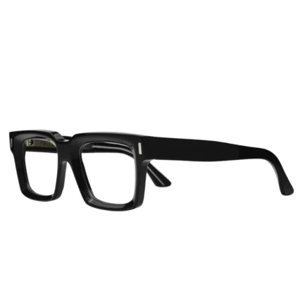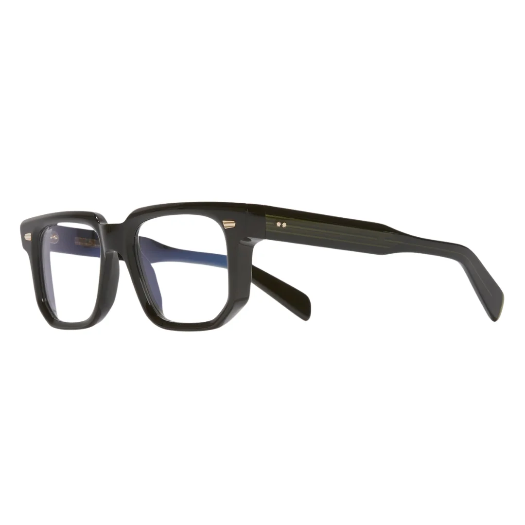 The Cutler and Gross CGOP 1410 01 is a definitive expression of structural design, heavily influenced by the geometric rigor of mid-century Modernist architecture. This Square frame serves as a masterclass in Architectural Authority, rendered in a deep, polished Black acetate that provides a sharp and commanding presence. The design is instantly recognizable by its dead-straight browbar that drops vertically at the bridge, creating a silhouette that is both grounded and intellectually provocative, reminiscent of the bold lines found in 20th-century urban planning.