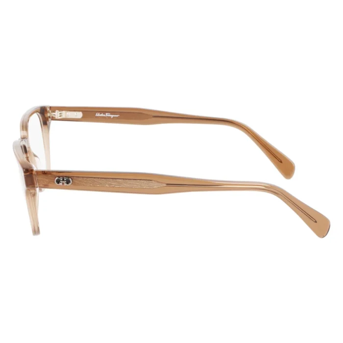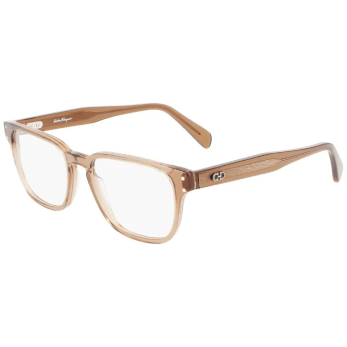 With an air of refined elegance, the Ferragamo SF2924 232 eyeglasses embody the timeless luxury and impeccable craftsmanship of the Salvatore Ferragamo brand. These striking eyeglasses, in a sophisticated transparent brown, feature a classic rectangular full-rim frame crafted from premium acetate, ensuring a lightweight and comfortable fit for all-day wear.1 The design is elevated by meticulous details, including the iconic metal double Gancini element on the temples, a subtle yet powerful symbol of the brand’s heritage. The visible core wire with a unique Saffiano effect adds another layer of a sophisticated touch, making the Ferragamo SF2924 232 eyeglasses a true masterpiece of design.
