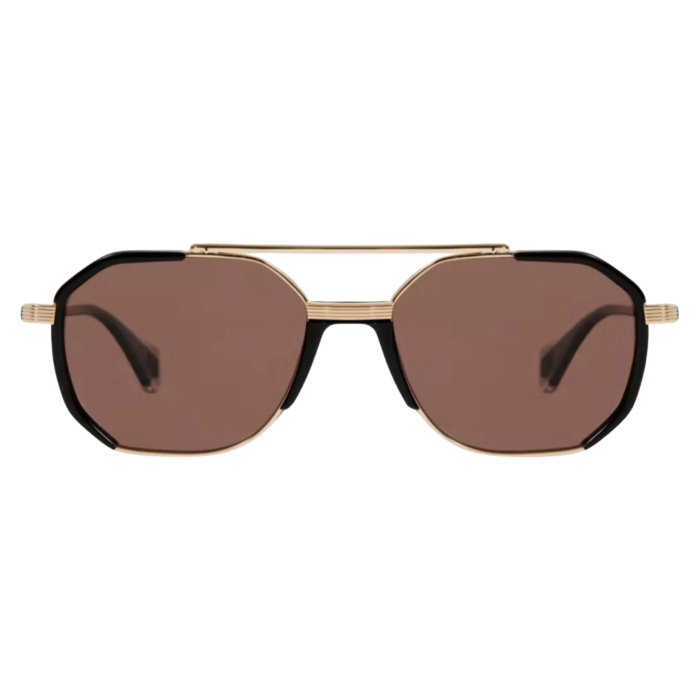The Gigi Studio Grant 6670 1189 features a luxurious, full-rim frame that combines hand-polished black acetate with elegant gold-tone stainless steel metal accents. This unique construction ensures both flexibility and robustness, providing a lightweight feel for all-day comfort without compromising durability. The distinguished double bridge design adds a touch of adventure to your look, making them versatile for both casual outings and formal events.