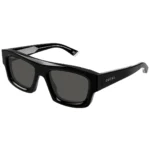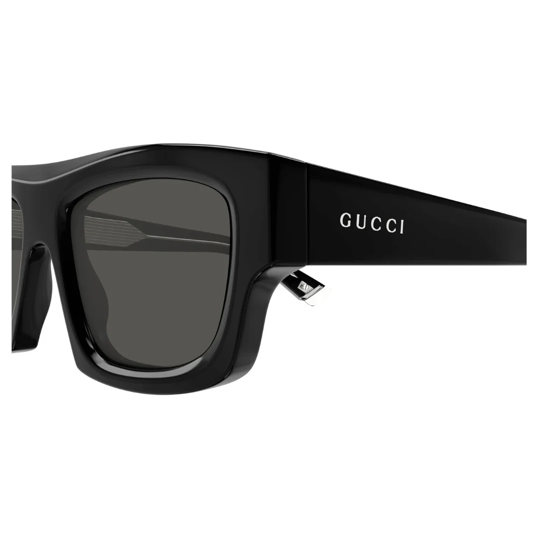 The signature luxury of the sunglasses is tastefully displayed on the temples. These frames feature the iconic Gucci lettering logo, elegantly engraved or applied in a complementing gold-toned finish. This subtle yet unmistakable branding confirms the frame’s designer pedigree and commitment to superior craftsmanship, assuring the authenticity of the Gucci GG1906S 002 sunglasses.