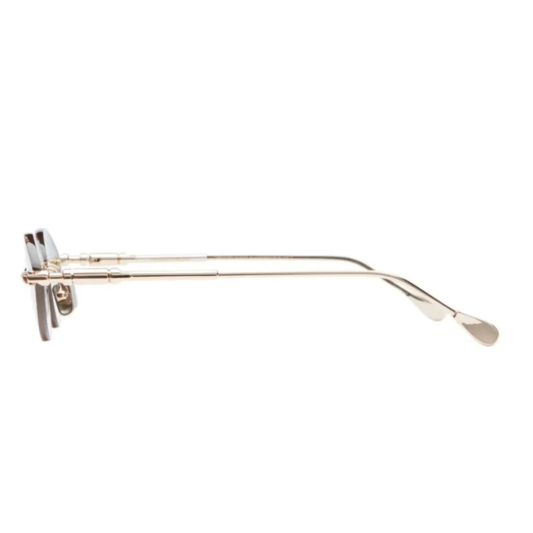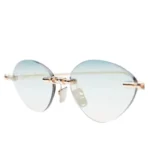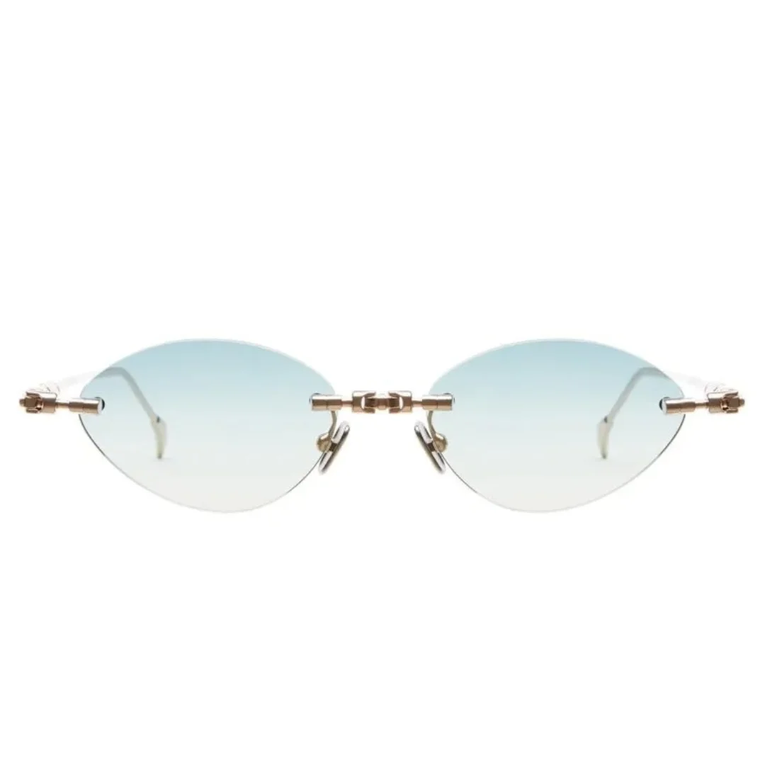 The aesthetic of the Kuboraum Maske H65 PG centers on its delicate yet commanding Oval shape. The rimless architecture creates a weightless appearance, allowing the focus to remain on the beautifully contoured lenses. These lenses are finished in a sophisticated green gradient, providing a cool, natural visual experience that is darker at the top for sun protection and lighter at the bottom for clarity. This gradient is housed within a frame of brilliant rose gold colour metal, a shade that adds a regal and warm glow to the skin.