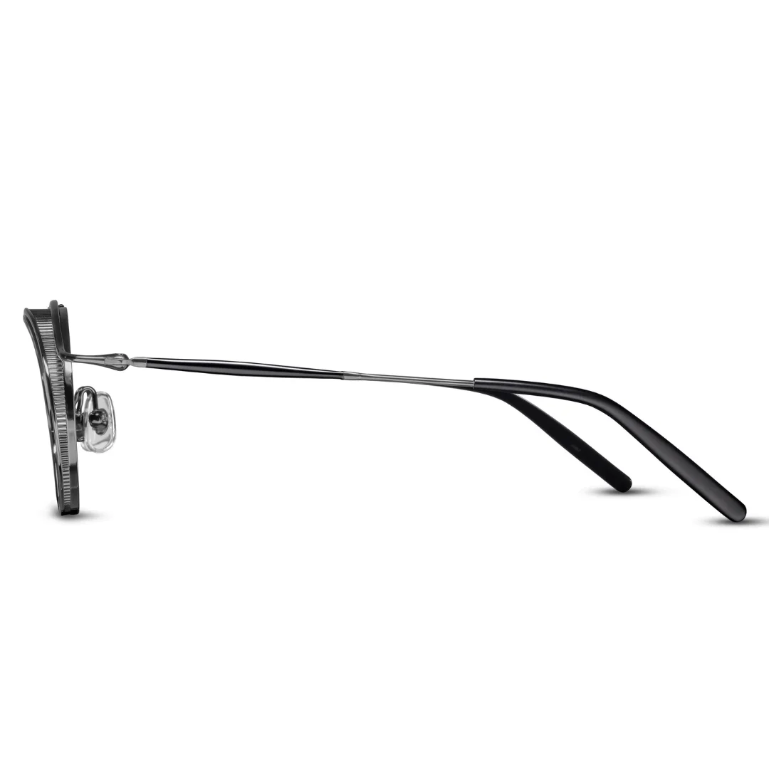 The soul of this frame is its unique Silver/Black Titanium Body round Navigator. While most navigators are square and aggressive, the 2903H softens the look with a circular lens rim, held within a sophisticated architectural cage. The “Ruthenium” (RTM) silver finish provides a dark, lustrous metallic sheen that is more exclusive and durable than standard chrome. This is contrasted by deep black titanium accents on the bridge and side-shield-inspired rims. The frame is forged from aerospace-grade Japanese titanium, ensuring that despite its complex, layered appearance, it remains incredibly lightweight and hypoallergenic for the Mumbai heat.