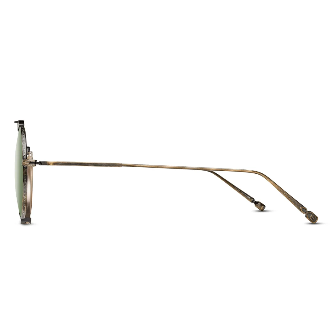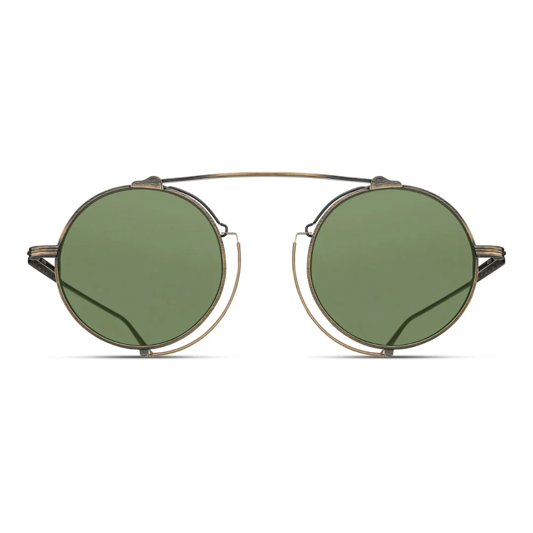 Complementing the warm metallic tones are the green solid lense inserts. These high-definition lenses are designed to provide a “natural vision” experience, transmitting colors evenly while offering superior protection against the harsh glare of the Indian sun. The green tint is traditionally favored for its ability to reduce eye strain during long periods of wear, making the Matsuda M3154 AG as functional as it is fashionable. Whether you are navigating the sun-drenched streets of Khar or the art galleries of South Mumbai, these lenses provide 100% UV protection and a premium back-side anti-reflective coating to ensure visual clarity.