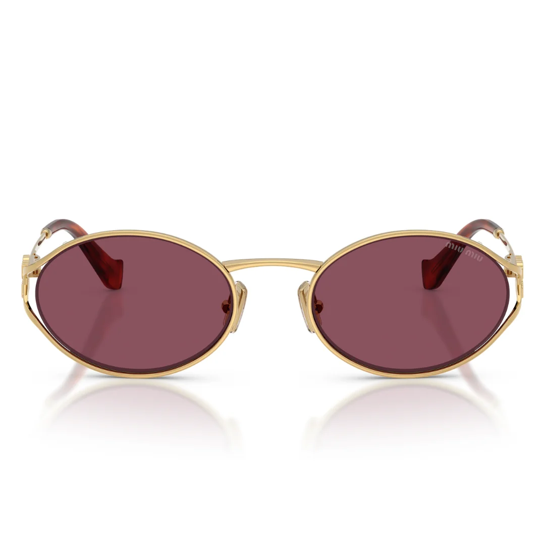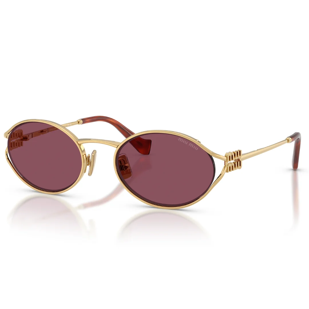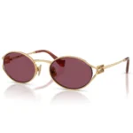 The Miu Miu SMU 52Y 5AK 20Y 54 is a centerpiece of the House’s daring and provocative design language. This model redefines the classic oval silhouette with a distinctive, high-fashion twist. The Gold metal frame is paired with striking Solid Violet lenses, offering a playful yet sophisticated visual signature that captures the brand’s “mischievous sister” aesthetic.