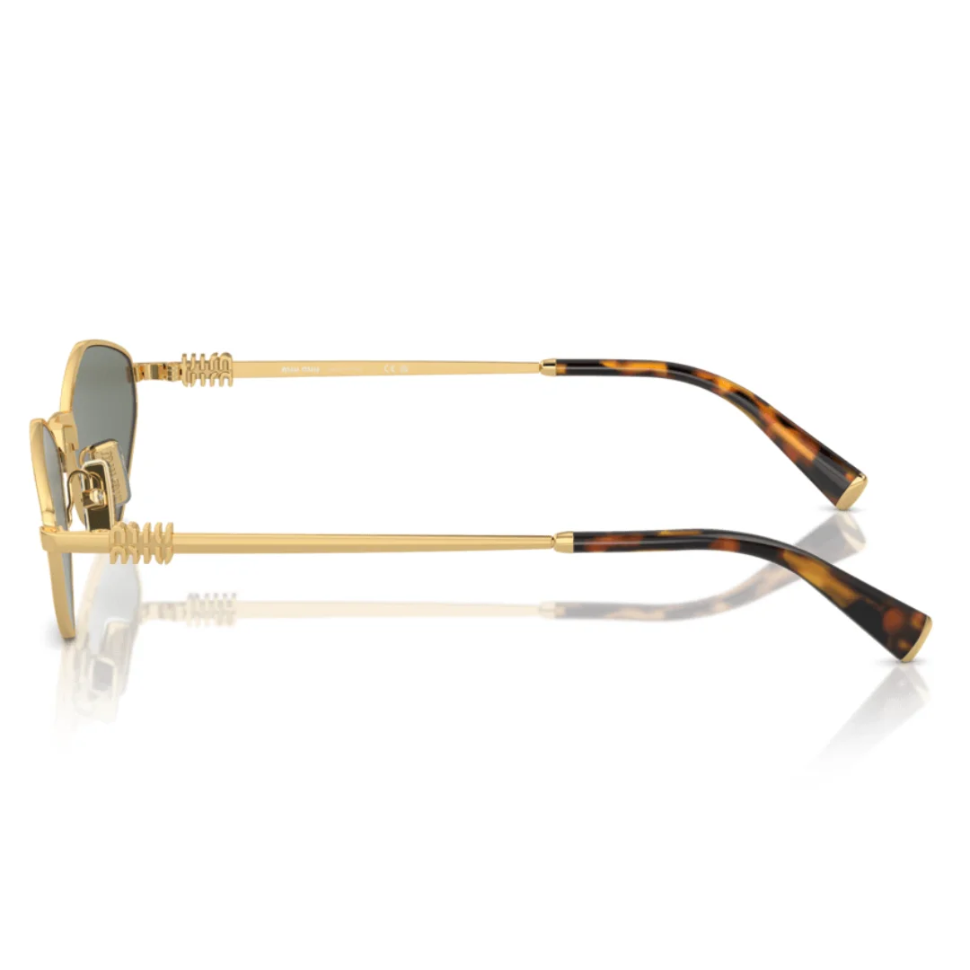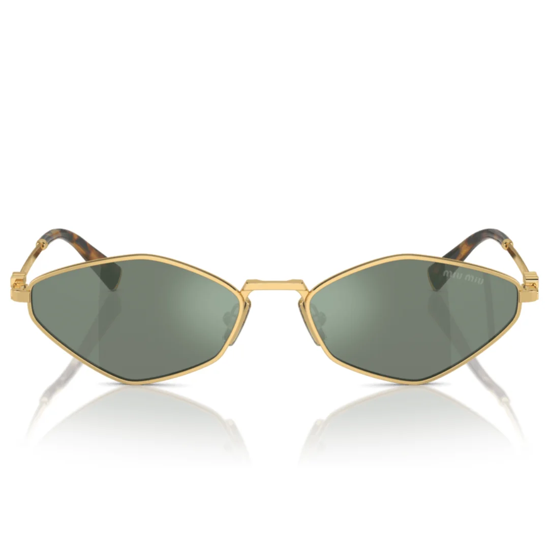 The Miu Miu SMU 56Z 5AK 04M (also referenced as the MU 56ZS) is a bold manifestation of the brand’s Unconventional Elegance. This model subverts traditional eyewear design with an irregular, angular front that feels both futuristic and high-fashion. The polished Gold metal frame is paired with specialized Green lenses featuring an internal silver mirror coating, which provides exceptional clarity and a unique aesthetic depth while ensuring Category 2 sun protection.