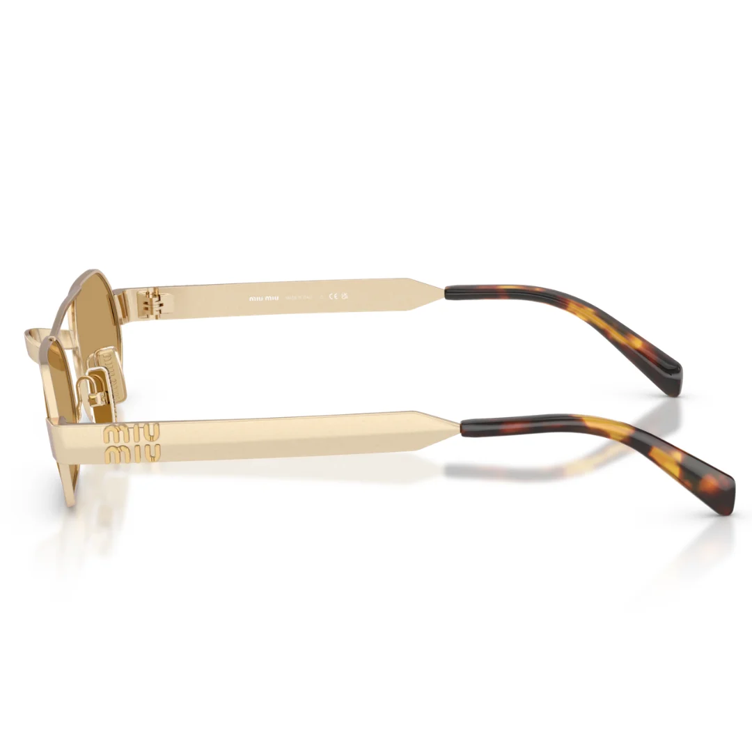 The Miu Miu SMU B52 22M 10Y is a strong, contemporary statement piece that reimagines the classic pilot silhouette through a high-fashion, avant-garde lens. Expertly handcrafted in Italy, this model features a Metal frame in a rich Antiqued Gold finish. The metallic front is masterfully paired with Solid Brown lenses, creating a sophisticated tonal look that offers excellent visual contrast and high-clarity protection in bright lighting.