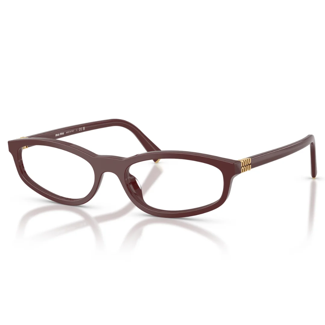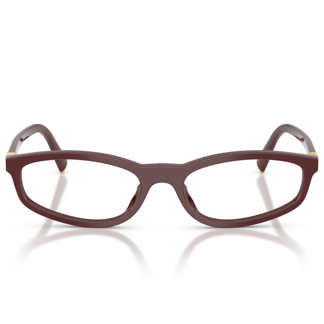 The Miu Miu VMU 01Z 26L 1O1 is a sophisticated optical frame that elegantly blends modern geometric lines with the house’s signature feminine charm. Expertly crafted in Italy from high-grade Acetate, this frame features a rich, polished Burgundy finish that offers a warm and expressive alternative to traditional neutral tones. As an optical model, it comes with Clear Demo Lenses, ready to be fitted with your personalized prescription.