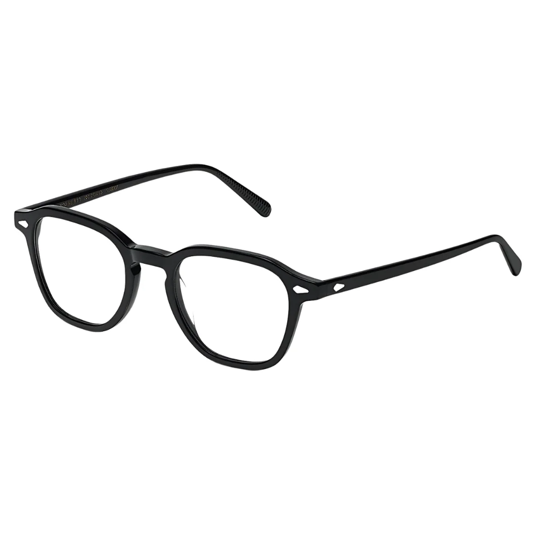 The architecture of this eyewear is defined by its Balanced Geometry. While it maintains the classic square shape, the Moscot Vantz Black features slightly thinner rims and a less aggressive bridge than its predecessors, providing a lighter visual weight on the face. With a 47mm lens and a 21mm bridge, it offers a tailored Medium fit. The signature diamond rivets on the front and temples are not just decorative; they are a hallmark of Moscot’s century-old commitment to traditional eyewear construction.