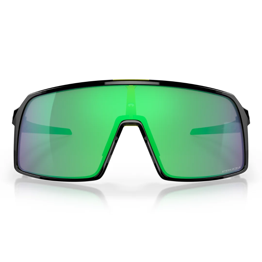 The visual signature of this model is the electric jade green mirror shield lense. Powered by Prizm™ Jade technology, this single-piece shield lense is engineered to enhance color and contrast, allowing you to see details in the road or trail that are usually invisible to the naked eye. The jade green mirror coating is not just a stunning aesthetic choice; it also works to balance light transmission and reduce glare in bright conditions. The contrast between the stealthy black acetate body and the vibrant jade green mirror creates a futuristic, high-performance look that is instantly recognizable.