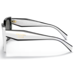The aesthetic foundation of the Prada 0PR 15W 09Q5S0 sunglasses is its deep, lustrous black colour. This polished black colour finish provides a versatile and authoritative appearance, ensuring these frames remain a timeless staple in your wardrobe. The chunky, oversized temples are a signature of this model, featuring the iconic Prada Milano triangle logo in a striking gold-tone finish. These women sunglasses are crafted from premium Italian acetate, which is hand-polished to achieve a mirror-like shine that catches the light beautifully, emphasizing the bold, faceted edges of the frame.