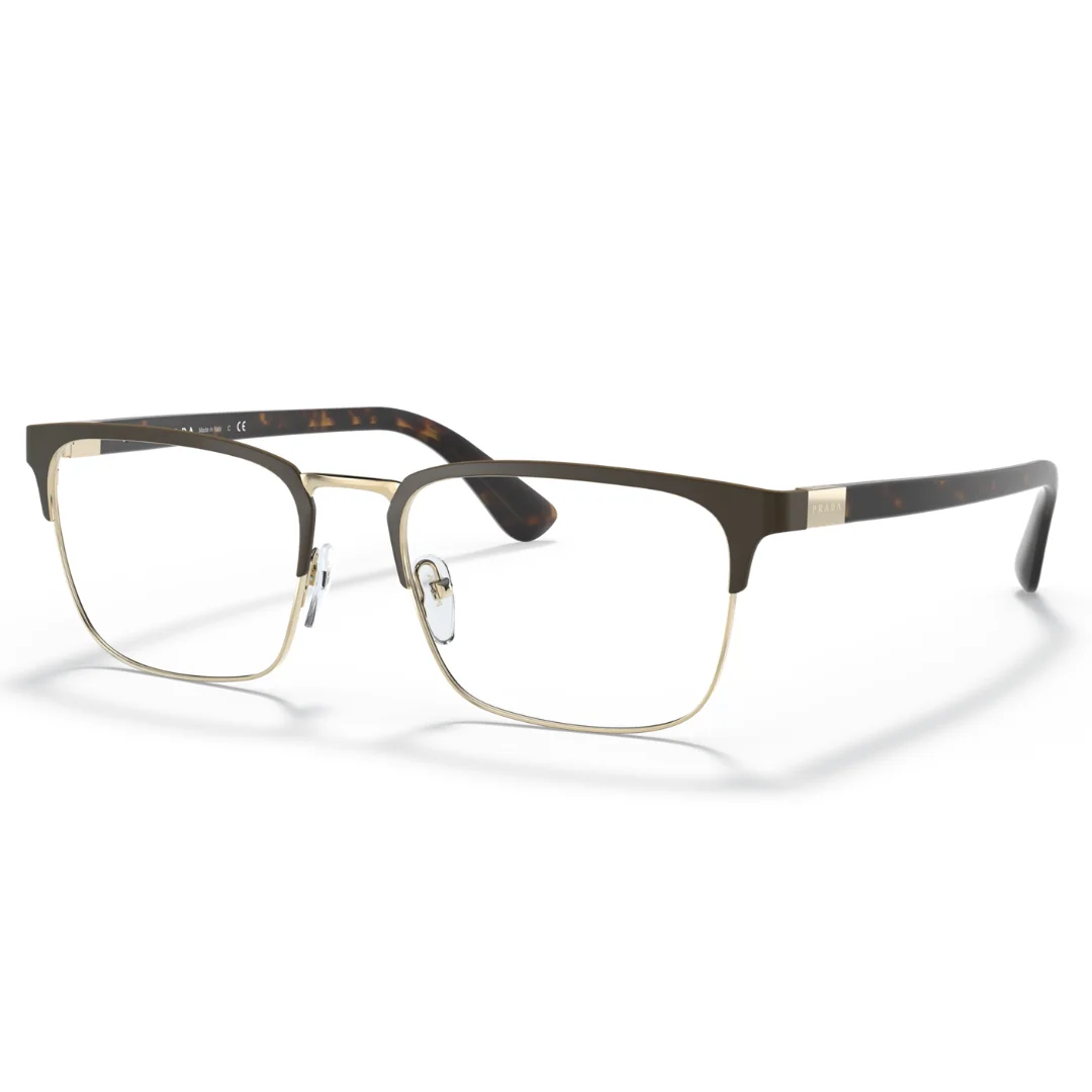 The Prada 0PR 54T 01U 1O1 is a masterclass in Linear Fluidity, masterfully merging weightless engineering with the brand’s signature high-fashion edge. Hand-finished in Italy, this model features a precision-molded Metal frame in a lustrous Gold finish, elegantly accented by a refined Brown brow bar. As a dedicated optical frame, it comes fitted with Demo Lenses, making it ready for your custom prescription at any boutique.