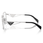 The architecture of the Prada 0PR A51 1BC 1O1 is defined by its Chiseled Square Silhouette. The design utilizes streamlined metal lines to achieve a low-profile elegance that highlights the wearer’s natural features. A standout feature is the openwork temple design, which incorporates the iconic Prada triangle logo as a structural element, adding a nuanced and artistic touch. With a 55 mm lens and a 19 mm bridge, it offers a refined, balanced fit for all-day comfort.
