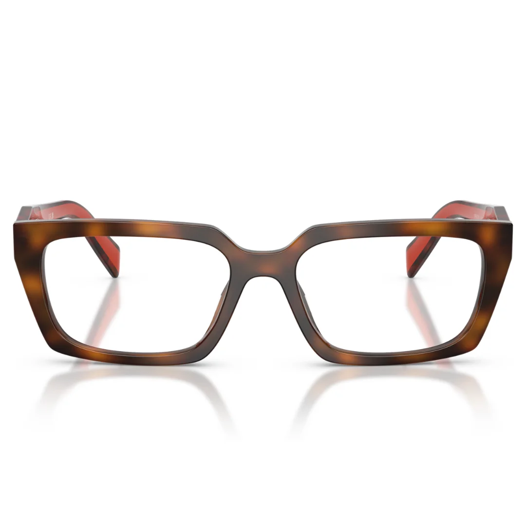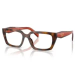 The Prada 0PR D05 01K 1O1 is a masterclass in Articulated Precision, blending traditional Italian craftsmanship with a progressive use of color and geometry. Hand-finished in Italy, this frame is machined from premium grade-A acetate. While the front features a classic Brown Havana, the design takes a technical turn with striking Havana/Red dual-tone temples. This purposeful design arrives with clear demo lenses, offering a seamless foundation for high-end optical customization.