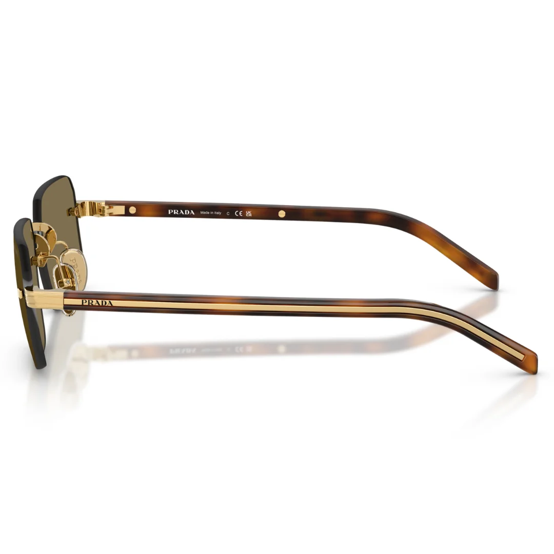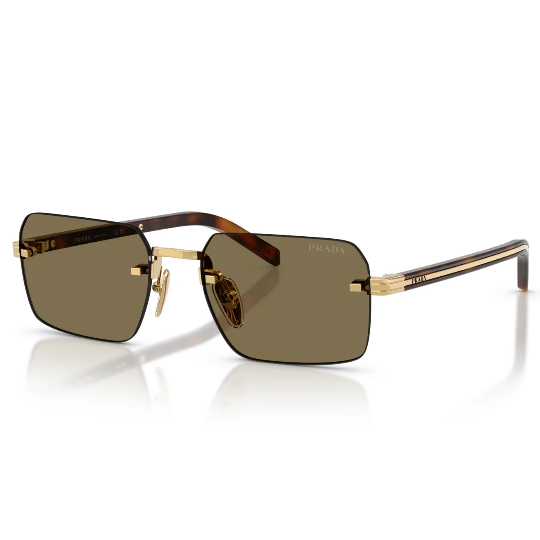 The Prada 0PR D55 5AK 90F is an exercise in Linear Fluidity, masterfully merging weightless engineering with the brand’s signature high-fashion edge. Hand-finished in Italy, this model features a precision-molded Metal frame in a lustrous Gold finish. The design is centered around a Rimless front, allowing the Solid Brown lenses to create a seamless, unobstructed aesthetic that feels ethereal on the face.