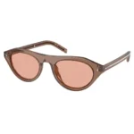 The Prada SPR B15 28I 50W 51 (from the Prada Symbole collection) represents a masterclass in tonal experimentation, blending architectural sharpness with a soft, ethereal palette. This model is meticulously crafted from Recycled Bio-Acetate in a unique Transparent Clay finish. This specific hue combines a sense of crystal transparency with a delicate earthy undertone, creating a frame that appears to change character depending on the light and the wearer’s skin tone.