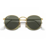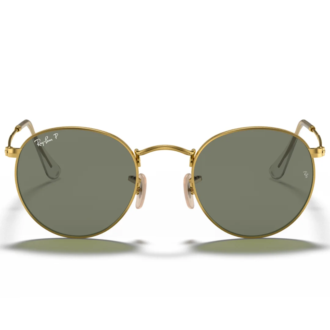 Ray Ban 0RB3447 00158 Round Gold Metal Green G-15 Polarized Sunglasses
