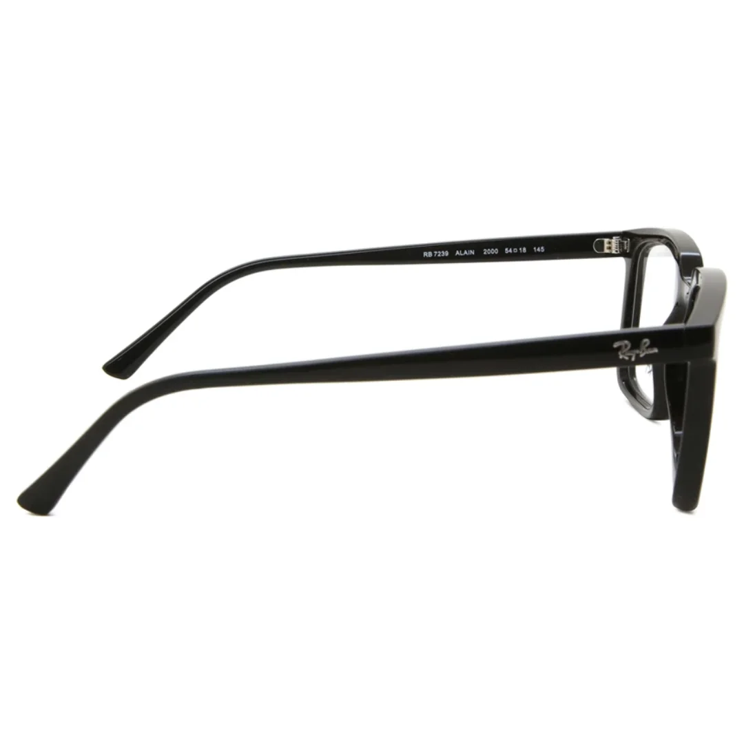 Every pair of Ray Ban 0RB7239 2000 eyeglasses comes equipped with a high-definition clear lens. This clear lens is the ideal starting point for your optical journey, designed to be easily swapped for your specific prescription. Whether you need single-vision, bifocal, or advanced digital blue-light protection, the clear lens setup ensures your vision remains sharp while your eyes are beautifully framed by the bold black colour chassis. The visual harmony between the obsidian-like frame and the transparency of the clear lens results in a look of focused intelligence. These unisex eyeglasses are the perfect choice for those who want their eyewear to reflect a professional yet edgy personality.