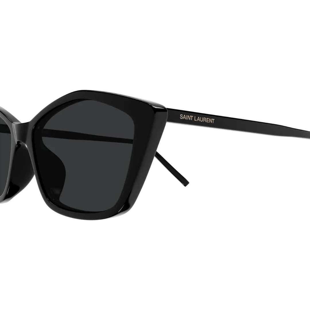 The Saint Laurent SL 775 001 is a definitive statement in high-fashion eyewear, offering a modern, exaggerated take on the classic Cat Eye silhouette. This model is a favorite for those in Mumbai who seek a bold, “feminine-power” aesthetic—perfect for the front rows of fashion events in Lower Parel or high-profile lunches in Bandra. The polished Black acetate frame is sculpted with sharp, upward-sweeping corners that provide an instant lifting effect to the face, embodying the rebellious yet sophisticated spirit of the Saint Laurent house.