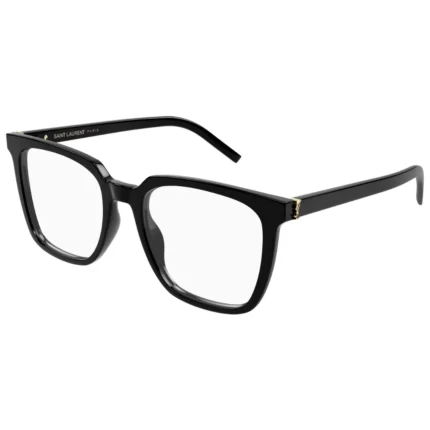 The Saint Laurent SL M146 OPT 001 eyeglasses showcase a distinct and universally flattering square shape, a strong silhouette that exudes quiet authority. The frame is meticulously crafted from high-quality acetate in a sleek, all-black finish. This versatile black acetate provides a sharp, sophisticated aesthetic that seamlessly complements any wardrobe, from professional attire to chic casual ensembles. This ensures the Saint Laurent SL M146 OPT 001 stands out with enduring brilliance, perfectly fitting into Mumbai’s diverse style landscape. The clean lines and well-proportioned profile offer a minimalist yet impactful presence, making them a versatile choice for any occasion.