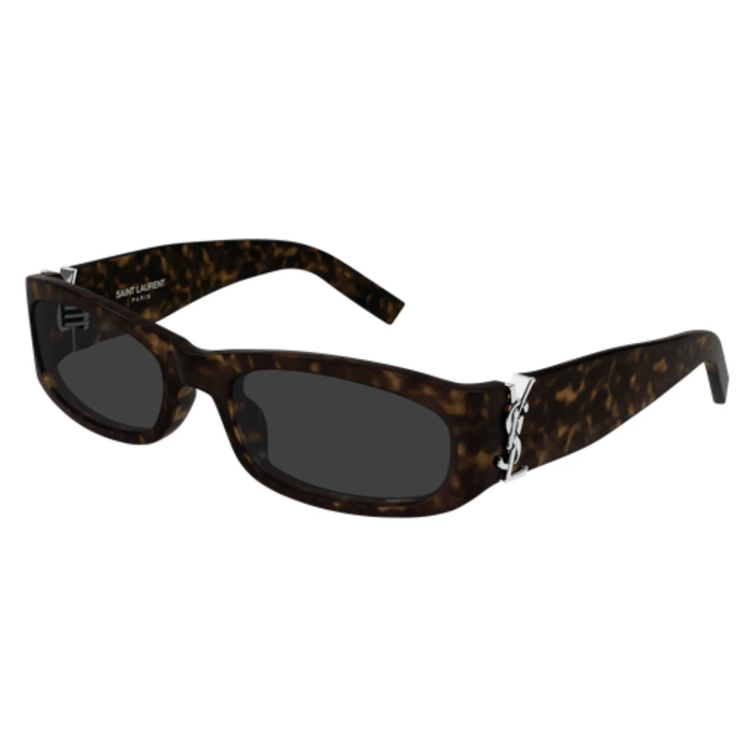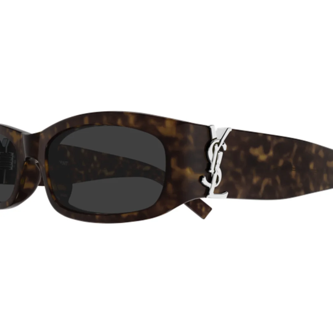 The visual allure of the Saint Laurent SL M152 002 sunglasses is defined by its rich, textured brown colour (Havana). This specific brown colour palette features a sophisticated mottled pattern that provides a warm, organic glow, making it a versatile choice for any skin tone. Unlike a solid frame, the tortoiseshell depth within the brown colour acetate ensures that your eyewear has a unique, hand-crafted feel. Adorning the temples is the oversized, iconic YSL monogram in polished gold-tone metal. This bold gold detail creates a breathtaking contrast against the brown colour, instantly identifying the Saint Laurent SL M152 002 sunglasses as a piece of high-fashion luxury.