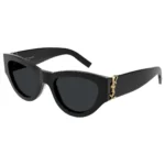 The Saint Laurent SL M94 001 sunglasses showcase a strong and assertive silhouette, often a sleek rectangular or a bold, structured design, crafted to command attention. The frame is meticulously constructed from high-quality, durable acetate, ensuring both a luxurious feel and robust construction. The 001 colorway points to a sophisticated classic black finish. This deep, rich black of the Saint Laurent SL M94 001 frame provides an incredibly versatile yet powerful aesthetic, effortlessly pairing with any ensemble, from haute couture to urban street style in Mumbai’s dynamic fashion scene.