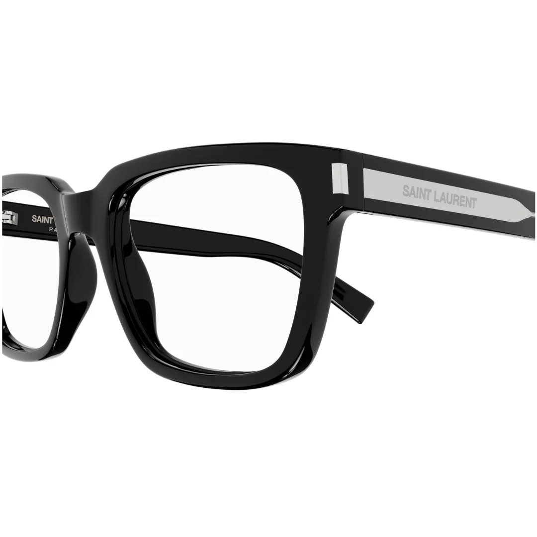 The Saint Laurent SL621 001 eyeglasses showcase a distinct and universally flattering square shape, a strong silhouette that exudes quiet authority. The frame is meticulously crafted from high-quality acetate in a sleek, black finish. This versatile black acetate provides a sharp, sophisticated aesthetic that seamlessly complements any wardrobe, from sharp professional attire to chic casual ensembles. This ensures the Saint Laurent SL621 001 stands out with enduring brilliance, perfectly fitting into Mumbai’s diverse style landscape. The absence of bold embellishments allows the impeccable design and quality of the Saint Laurent SL621 001 to speak for itself, offering a minimalist yet impactful presence.