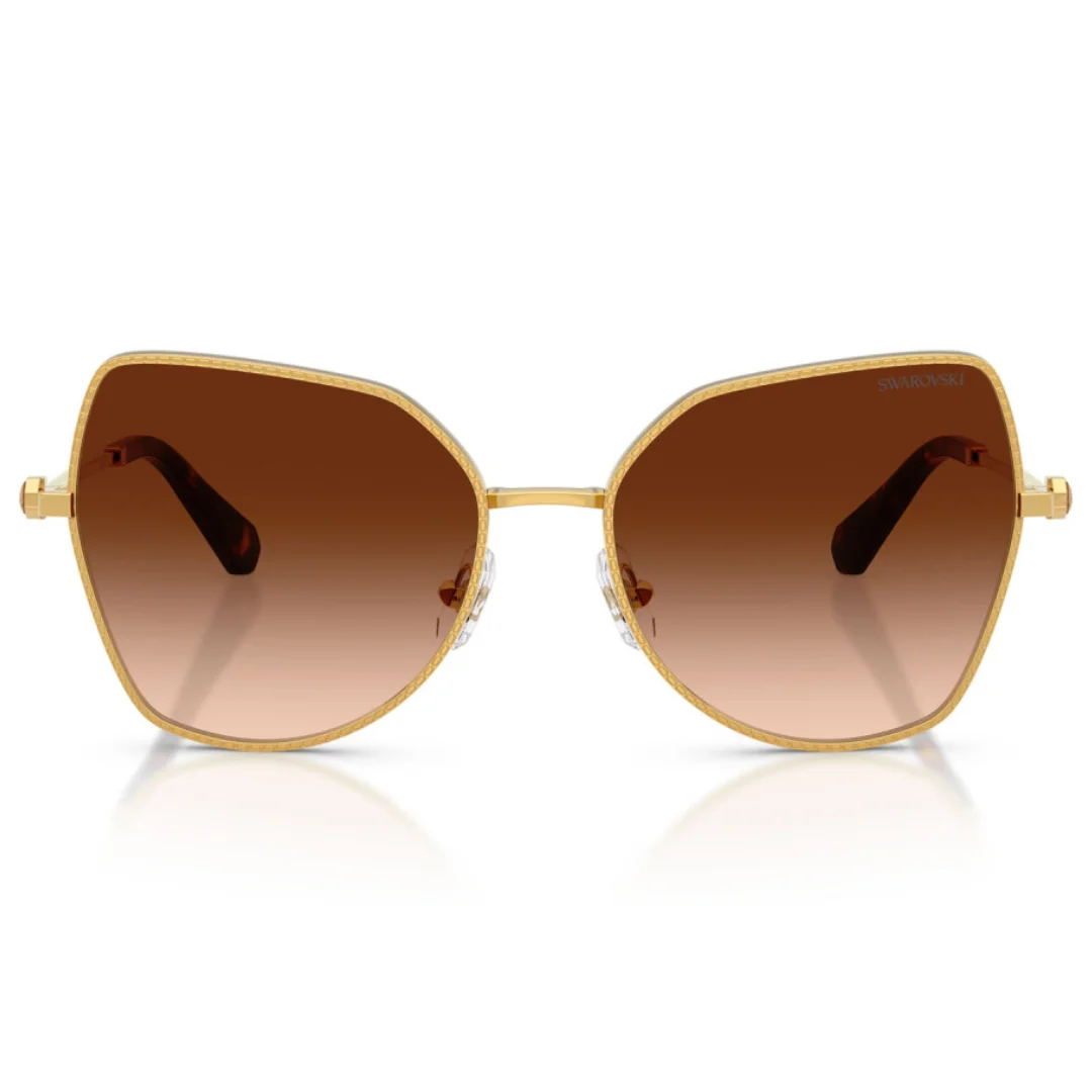 Visual elegance is further enhanced by the inclusion of a stunning brown gradient lens. This brown gradient lens is as functional as it is beautiful; it features a darker tint at the top to protect against intense overhead glare while gradually transitioning to a lighter shade at the bottom. This makes the Swarovski 7037 400774 sunglasses perfect for moving between indoor and outdoor environments, providing a warm, soft filter for your vision. The earthy, rich tones of the brown gradient lens harmonize perfectly with the polished gold colour frame, creating a palette of sun-kissed luxury that complements any skin tone.