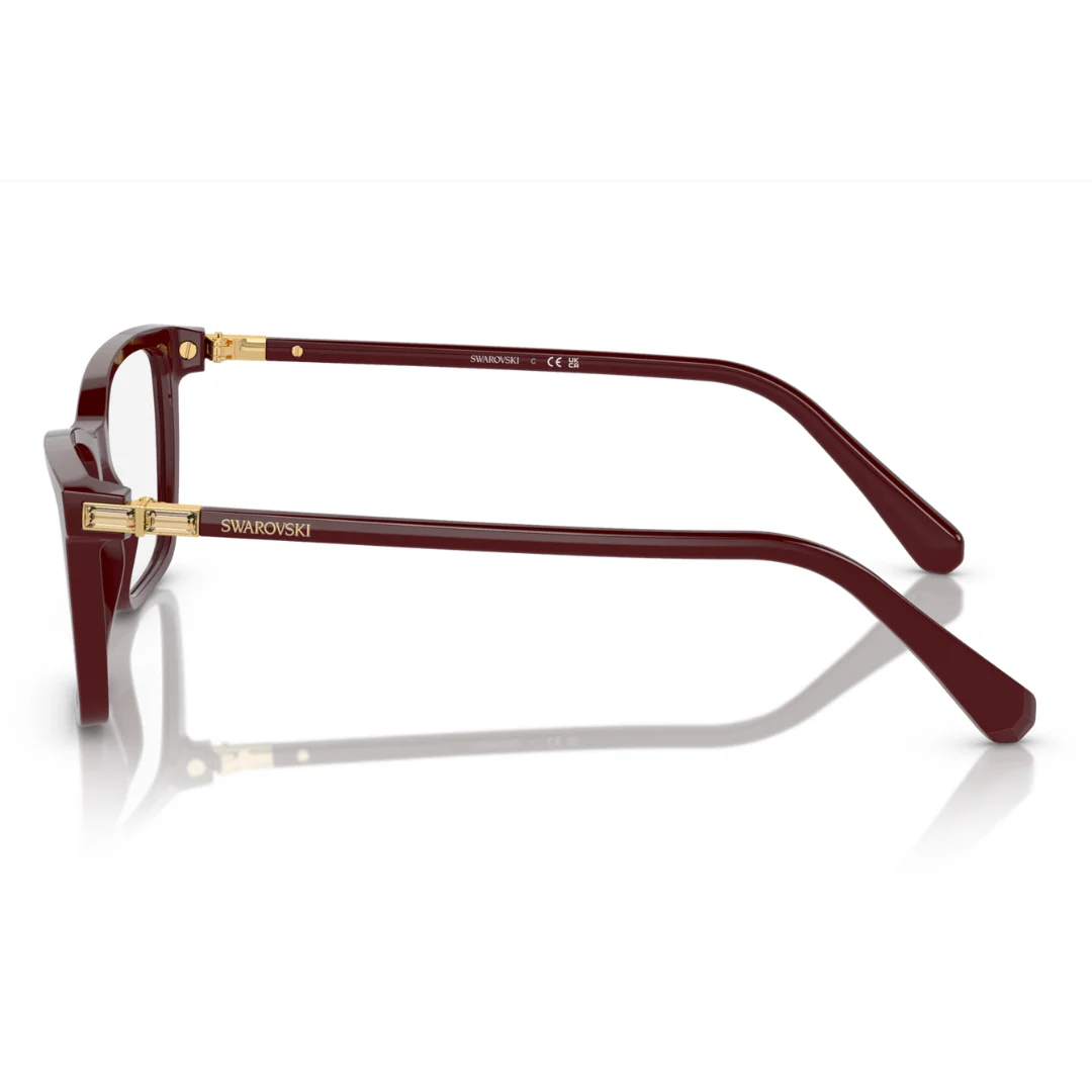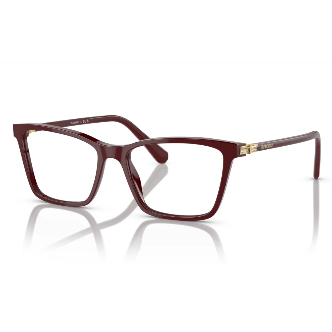 The Swarovski SK2015 1008 is a masterclass in modern luxury, where sharp architectural lines meet modern technical sculpting. Expertly crafted in Italy, this frame is machined from high-grade Burgundy acetate, offering a rich, jewel-toned finish that provides a warm and sophisticated alternative to traditional dark frames. This purposeful design serves as a seamless foundation for high-performance optical prescriptions, arriving with clear demo lenses.