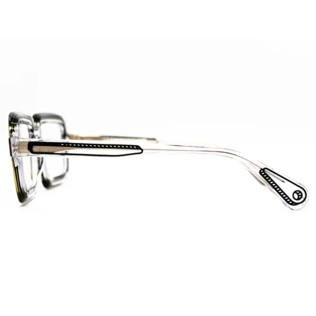 The Theo Eye Witness YI 3 is a captivating piece from the “Bourbon Way” collection, inspired by the playful 3D objects encapsulated in plexiglass keyrings from the 1960s. This Square frame is a testament to Theo’s commitment to “colouring outside the lines,” featuring a Transparent acetate that gives the appearance of a design visually frozen in time. In Mumbai, the Theo Eye Witness YI 3 is a favorite among the artistic community in Kala Ghoda, offering a clear, sculptural aesthetic that reflects the city’s vibrant, modern energy.