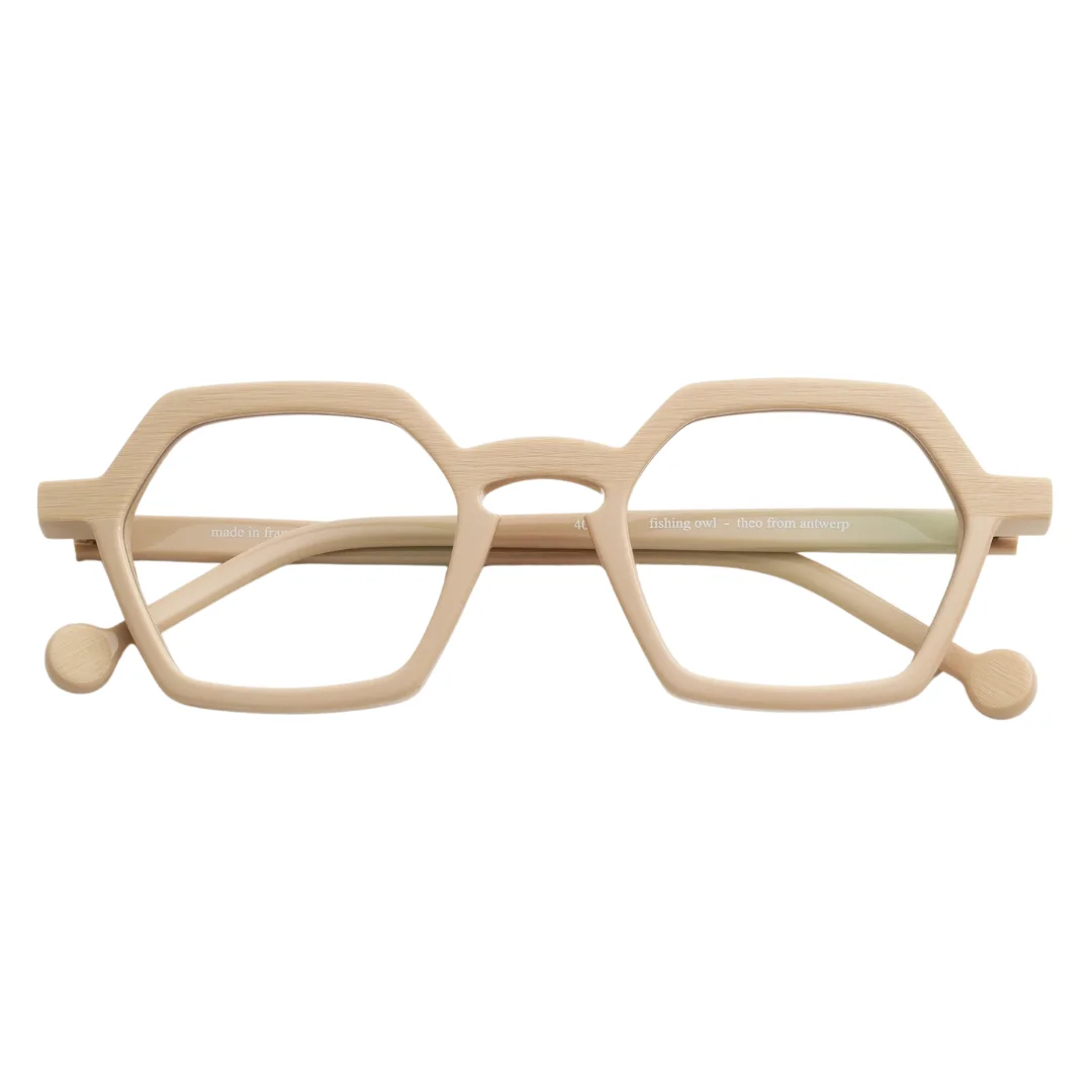 The Theo Fishing Owl 40 is a standout piece from the “Owls” collection, a series that celebrates the brand’s penchant for daring, nature-inspired geometry. This Hexagon frame is a testament to Theo’s commitment to “colouring outside the lines,” featuring a soft Beige acetate that offers a sophisticated, skin-tone-friendly alternative to traditional bold colors. In Mumbai, the Theo Fishing Owl 40 is a favorite among the design community in Bandra, offering a sculptural and intellectual aesthetic that feels both avant-garde and remarkably wearable.