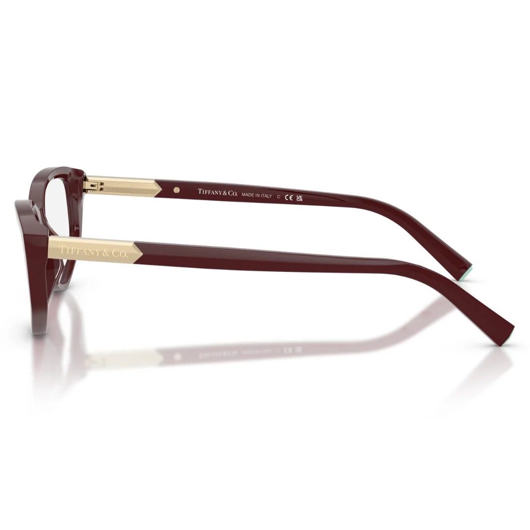 The Tiffany & Co. TF2276 8389 is a masterclass in contemporary luxury, where iconic jewelry-inspired design meets modern technical sculpting. Expertly crafted in Italy, this frame is machined from premium Burgundy acetate, offering a rich, wine-toned finish that serves as a warm and professional alternative to standard dark frames. This purposeful design serves as a seamless foundation for high-performance optical prescriptions, arriving with clear demo lenses.