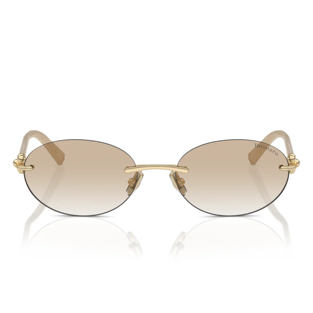 The architecture is defined by its Statuesque Oval Silhouette, utilizing chiseled bridge detailing and a refined rimless construction to create a balanced and airy appearance. A key technical highlight is the integrated temple design, featuring the sophisticated Tiffany T logo and subtle jewelry-inspired crystal accents, serving as a hallmark of sophisticated luxury. With a 56 mm lens and adjustable nose pads, the frame ensures calculated all-day ergonomic stability and a refined, graceful fit.
