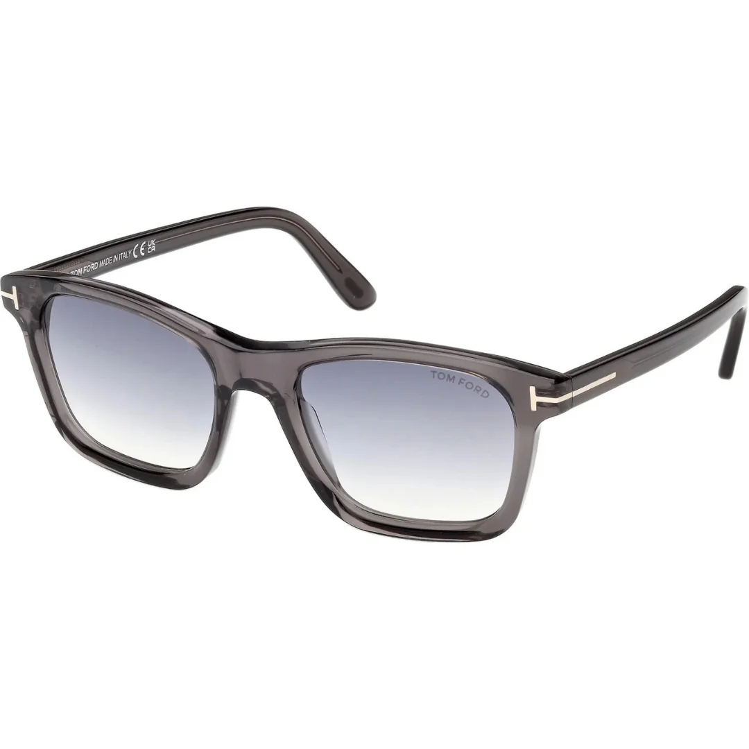 Equipped with a professional-grade grey gradient lens, the Tom Ford TF1179 20B sunglasses offer exceptional visual comfort. The grey gradient lens is darker at the top to provide maximum protection from overhead sunlight and transitions into a lighter tint at the bottom. This feature is not only aesthetically pleasing but also highly functional for tasks like driving or checking a smartphone while outdoors. The cool tone of the grey gradient lens perfectly harmonizes with the grey colour frame, ensuring a monochromatic look of effortless cool.