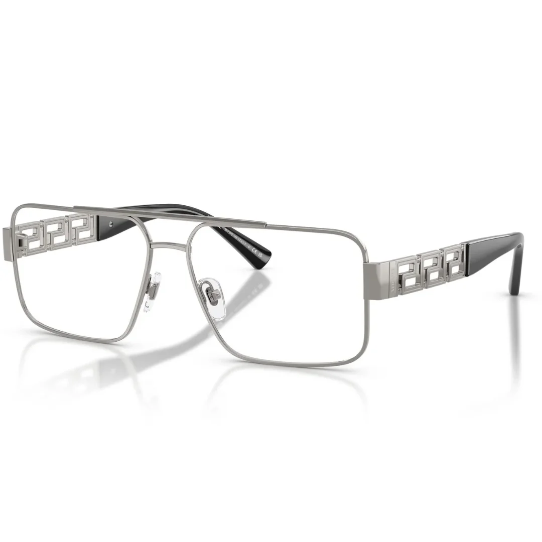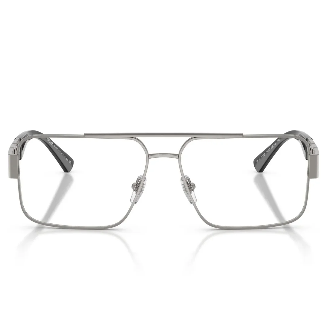 The defining aesthetic of the Versace VE1308 1000 eyeglasses is its sleek and masculine gunmetal colour. This brushed gunmetal colour finish provides an industrial yet luxurious feel, offering a refined alternative to standard silver or black frames. The metallic sheen of the gunmetal colour highlights the unique, irregular geometric shape of the lenses, creating a look that is both edgy and timeless. As premium unisex eyeglasses, the VE1308 series features a lightweight metal construction that provides a slim profile while maintaining the structural integrity Versace is known for.