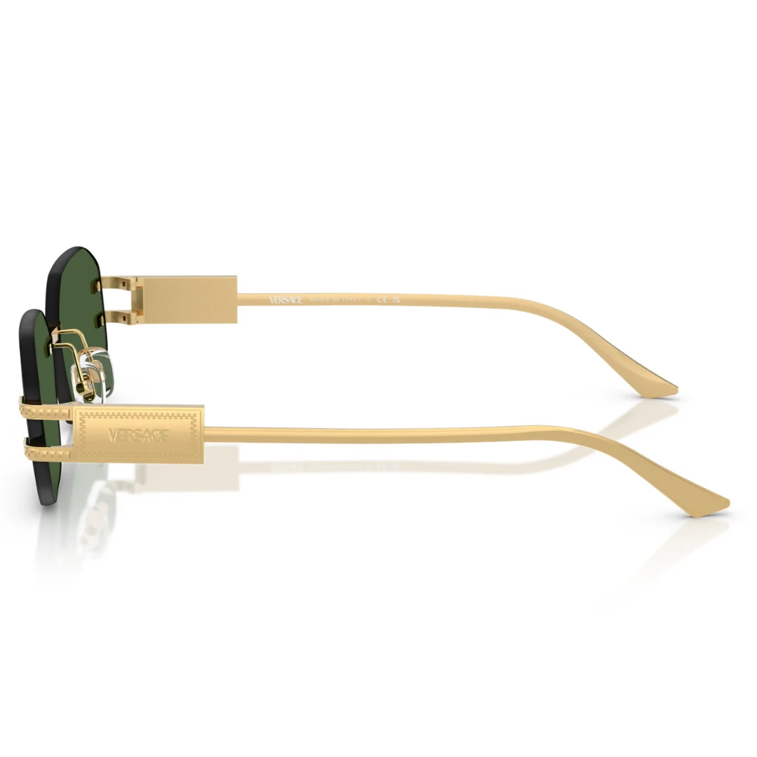 The Versace VE2274 100271 is a masterclass in Italian luxury, where high-fashion aesthetics meet modern technical sculpting. Expertly crafted in Italy, this rimless frame is machined from high-grade Gold metal, paired with iconic Solid Green Lenses. This purposeful design serves as a seamless foundation for a bold, contemporary look, offering a lightweight feel without compromising on structural integrity.