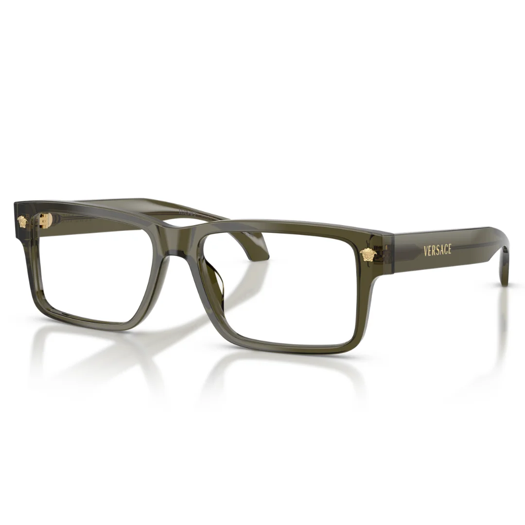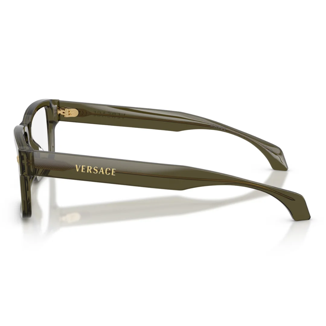 The Versace VE3391U 5542 is a masterclass in Italian luxury, where deep, natural aesthetics meet modern technical sculpting. Expertly crafted in Italy, this frame is machined from premium Dark Green Transparent recycled acetate, providing a sustainable yet high-impact visual statement. This purposeful design serves as a seamless foundation for high-performance optical customization, arriving with clear demo lenses.