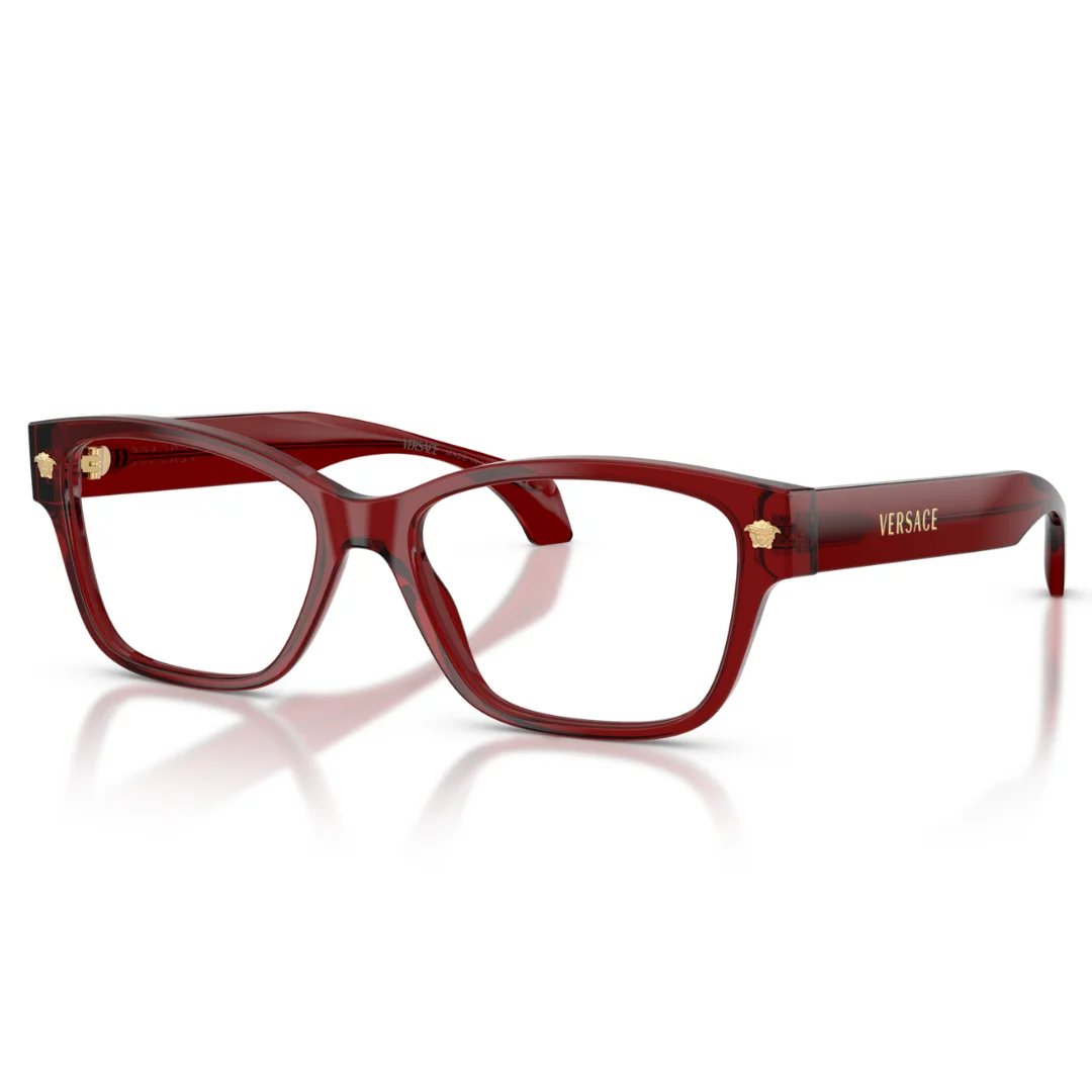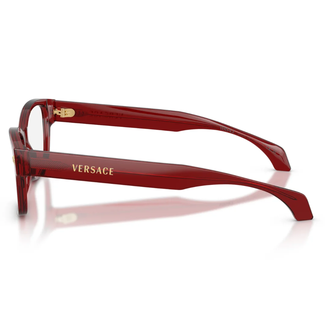 The Versace VE3392 5540 is a masterclass in Italian luxury, where rich, jewel-toned aesthetics meet modern technical sculpting. Expertly crafted in Italy, this frame is machined from high-grade Transparent Burgundy acetate, offering a sophisticated and deep color profile that reacts beautifully to light. This purposeful design serves as a seamless foundation for high-performance optical customization, arriving with clear demo lenses.
