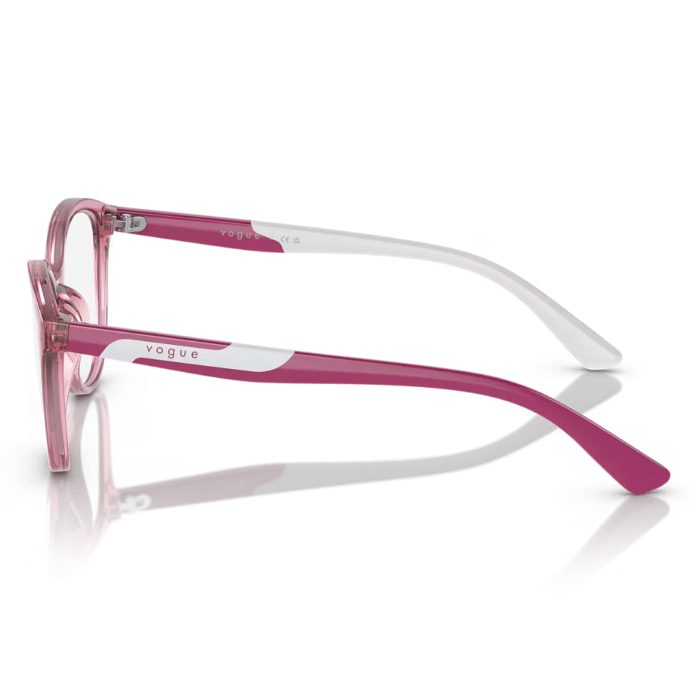 The design of the Vogue VY2019 3065 eyeglasses features a stylish and durable pillow or oval shape, expertly crafted from high-quality plastic. This lightweight and sturdy material ensures a secure and pressure-free fit, perfect for all-day wear, whether in the classroom or on the playground in the dynamic Mumbai environment. The captivating pink frame of the Vogue VY2019 3065 eyeglasses offers a vibrant and cheerful aesthetic, ensuring they stand out and seamlessly integrate into any young person’s wardrobe.